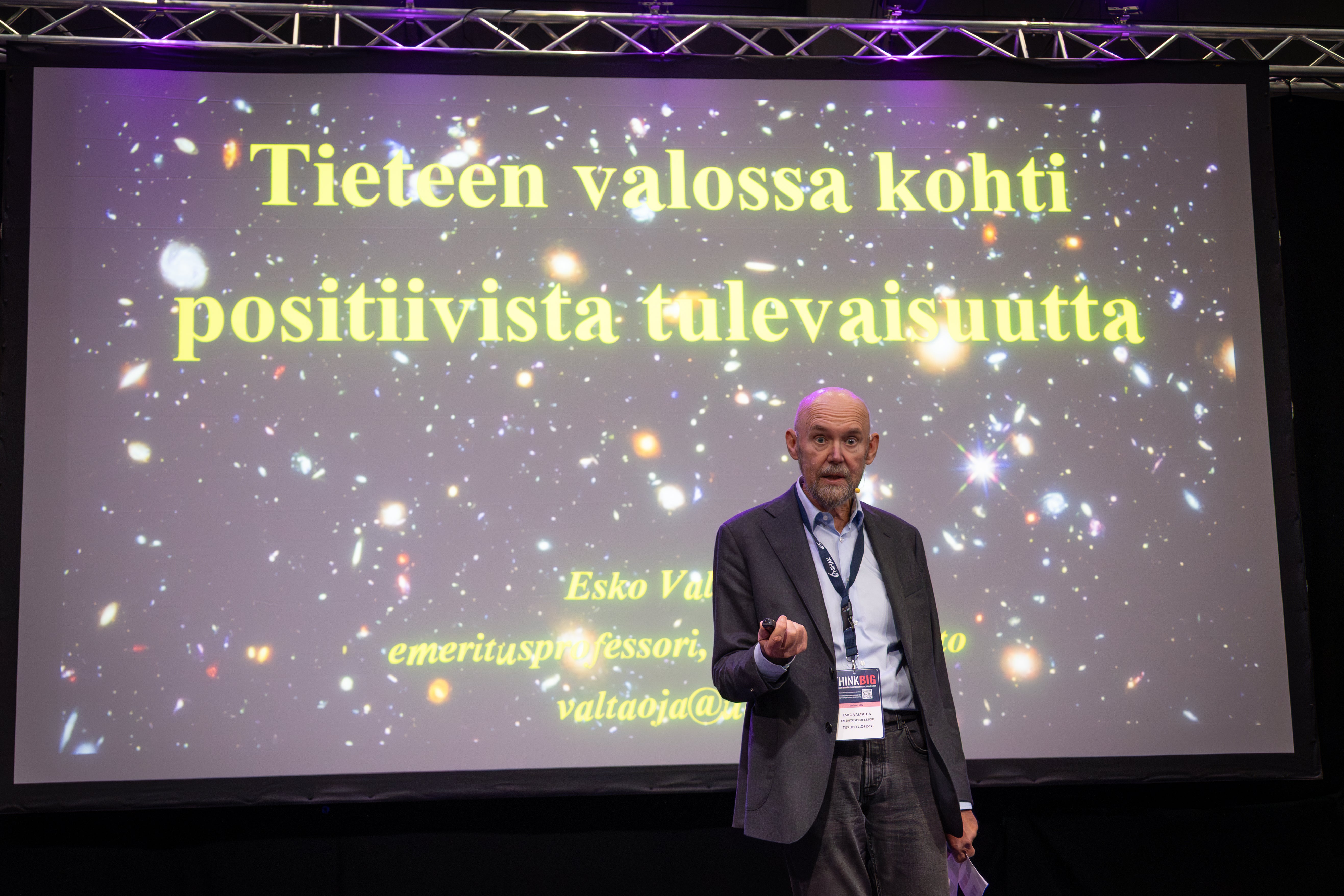 Esko Valtaoja on Turun yliopiston avaruustähtitieteen emeritusprofessori, kirjailija ja esitelmöitsijä. Hän on julkaissut 270 kansainvälistä tieteellistä julkaisua, kirjoittanut viisitoista yleistajuista tietokirjaa ja lähes neljäsataa lehtikolumnia. Hän on saanut työstään lukuisia palkintoja, mm. Tieto-Finlandian ja Valtion tiedonjulkistamispalkinnon. Tiedebarometri-kyselyssä hänet on toistuvasti nimetty tunnetuimmaksi elossa olevaksi suomalaiseksi tutkijaksi.