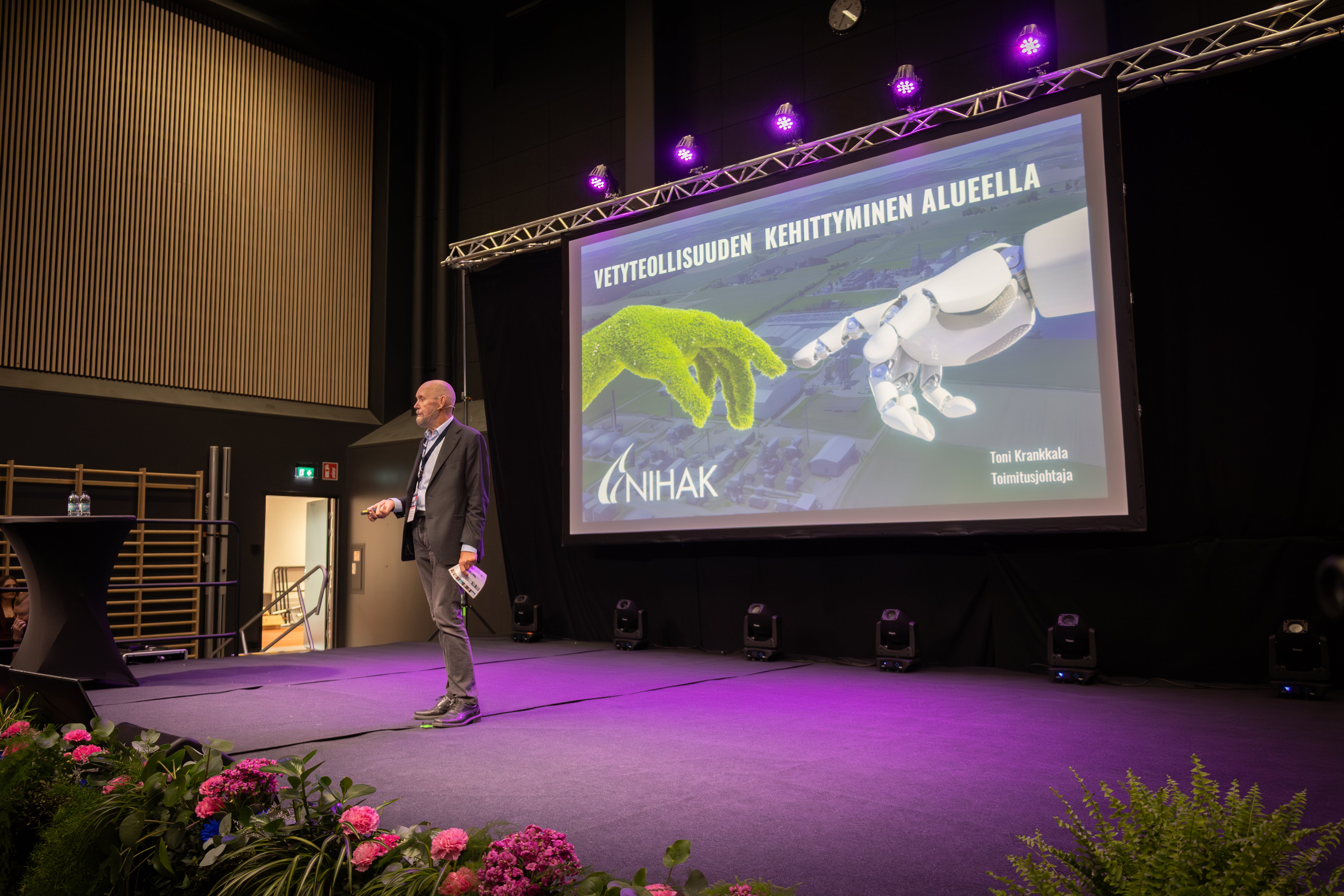 Tilaisuuden avauspuheenvuorossa NIHAKin toimitusjohtaja Toni Krankkala luo katsauksen alueen kehitykseen, yhteistyöhön ja tulevaisuuden mahdollisuuksiin.
